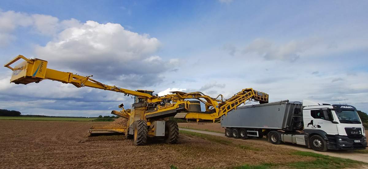 Bei uns sieht man auch ganz selten Überladewagen und den Rüben (Südhessen). Allgemein wird auch eher selten während der Fahrt abgebunkert. Meistens werden die Mirten direkt vom Roder am Feldrand angelegt. Deutlich öfter als Überladewagen sind hier Muldenkipper im Einsatz um von Schlägen ohne festen Weg die Rüben zur Miete zu fahren.