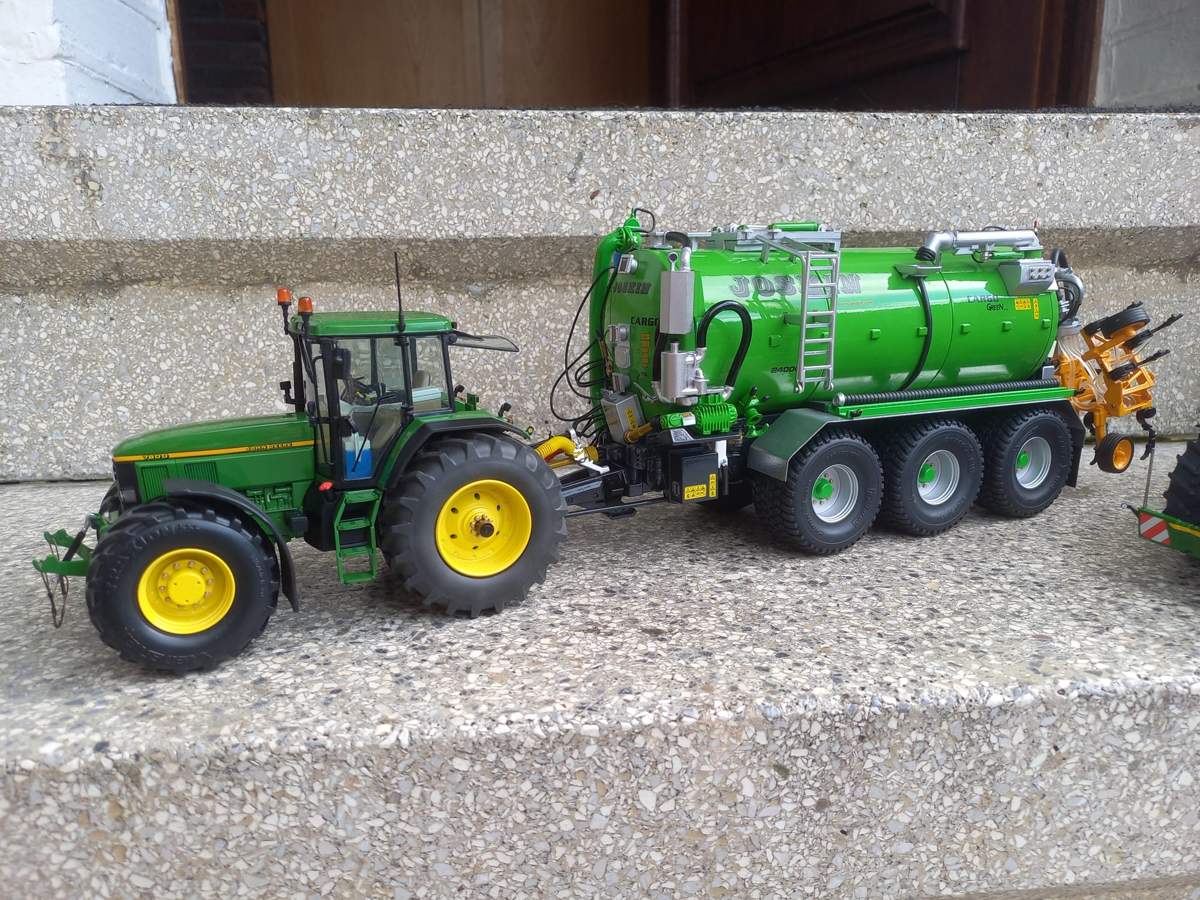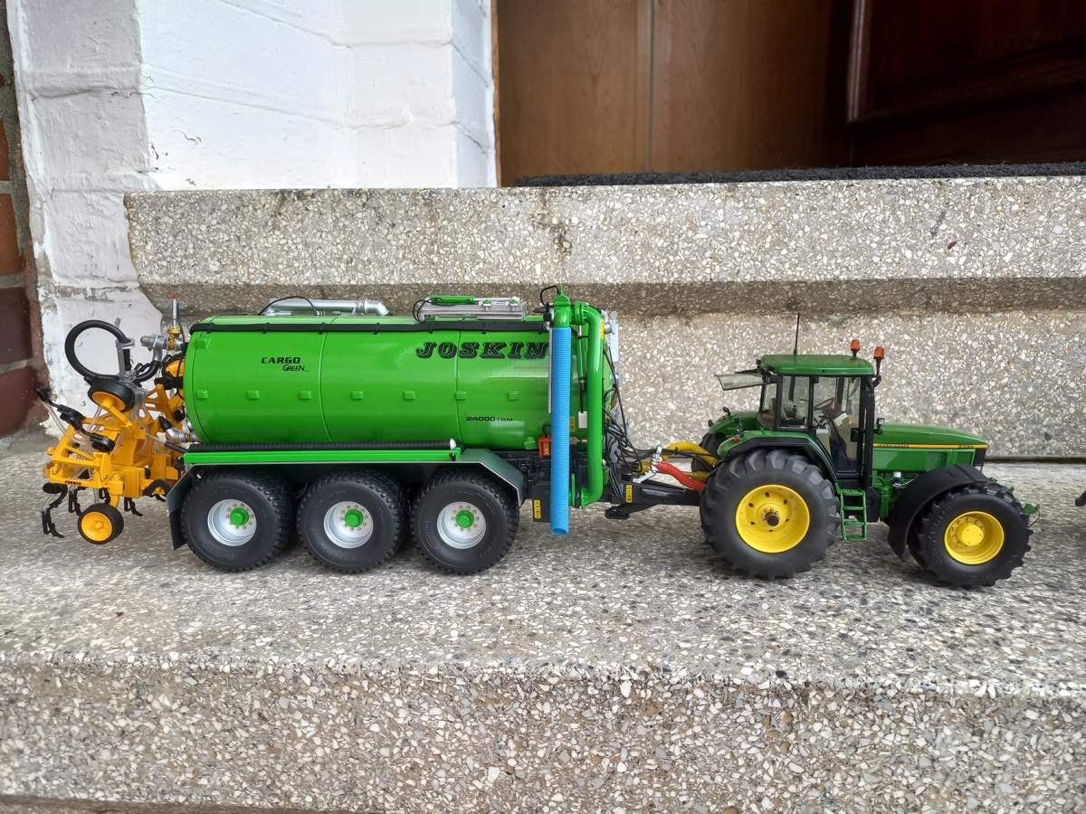 möchte euch hier gerne meine beiden umgebauten John Deere 7800 und 7810 von Schuco und die beiden Joskin Fässer vorstellen.