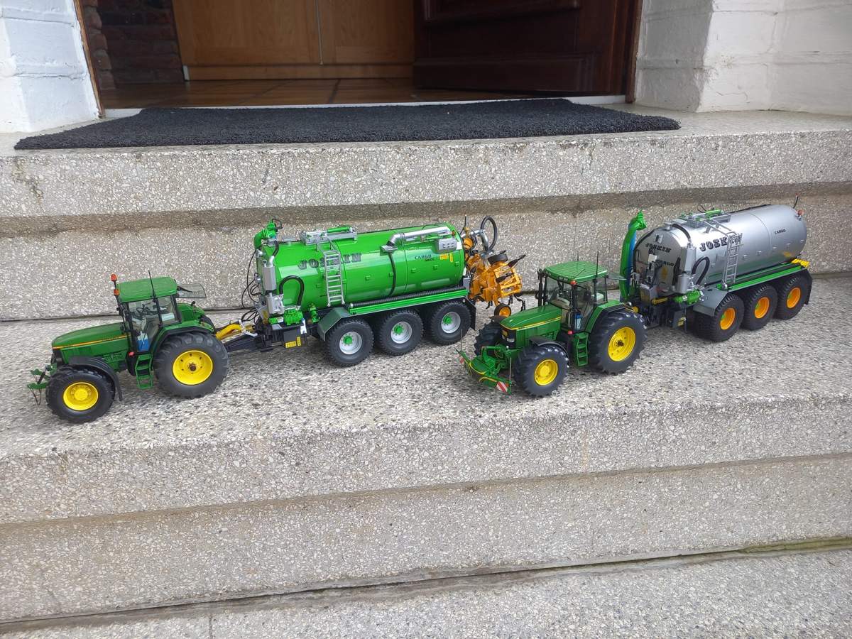 möchte euch hier gerne meine beiden umgebauten John Deere 7800 und 7810 von Schuco und die beiden Joskin Fässer vorstellen.