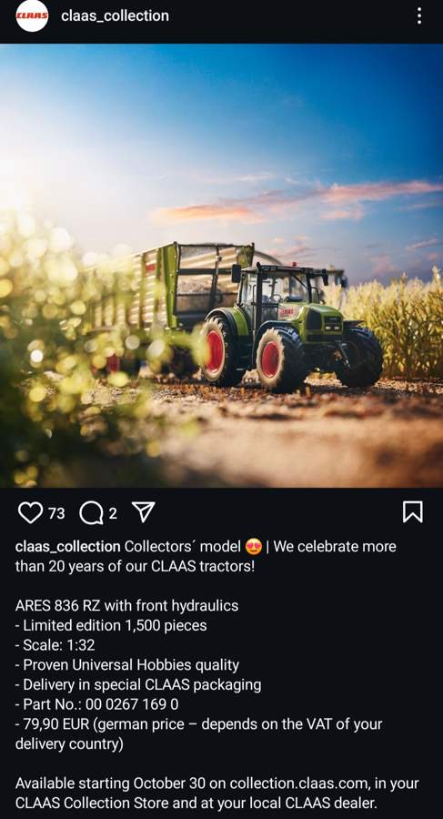 Der Claas Ares sieht auch wieder richtig gut aus. Können die nicht langsam mal aufhören, solch klasse Modelle herauszubringen?