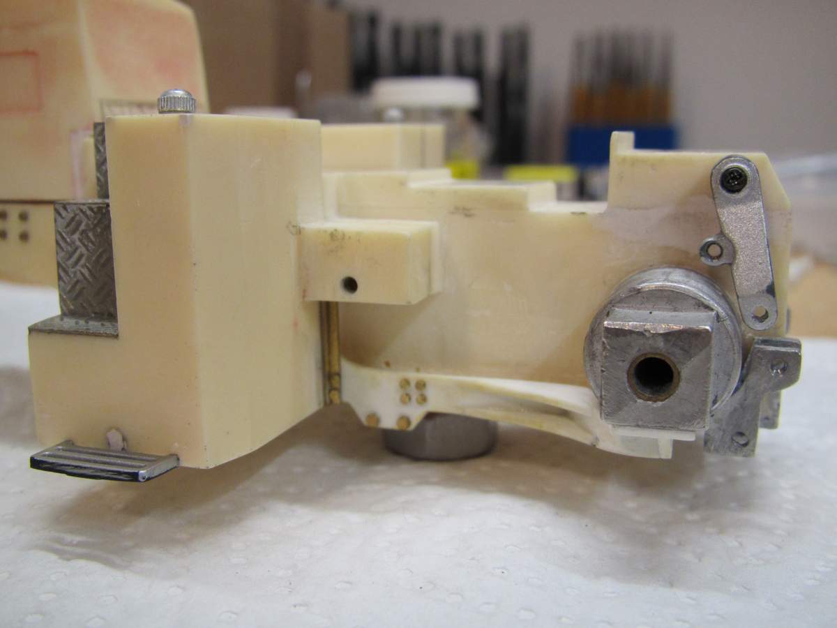 Die hintere Kabinenhalterung, die im Bausatz aus Weißmetall besteht, wurde von mir kompl. neu aufgebaut: