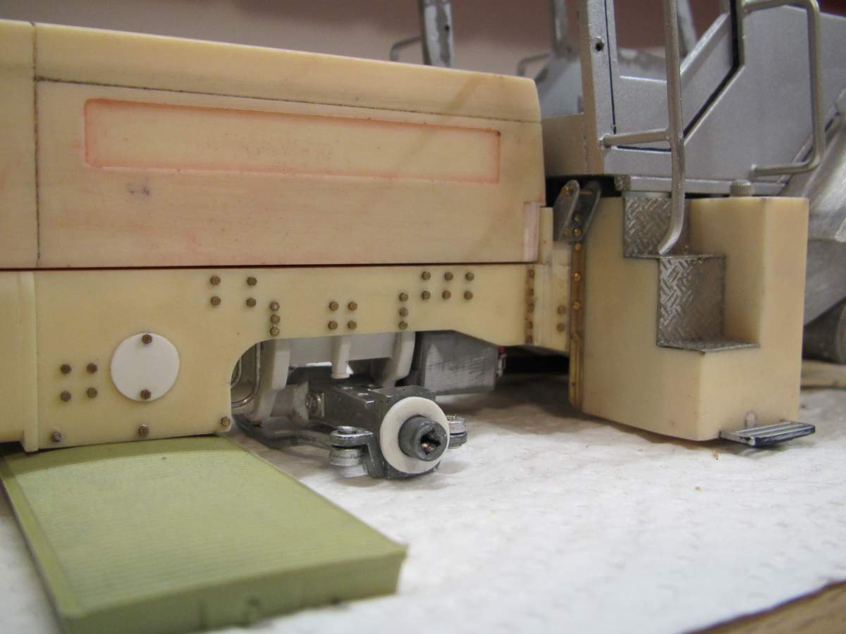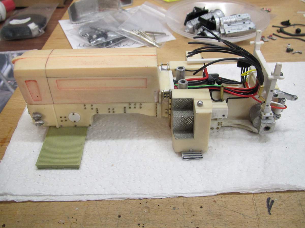 Der Resinklotz wurde im hinteren Bereich unter der Kabine stark bearbeitet, um das Getriebe ein Stück weit nachzubilden,