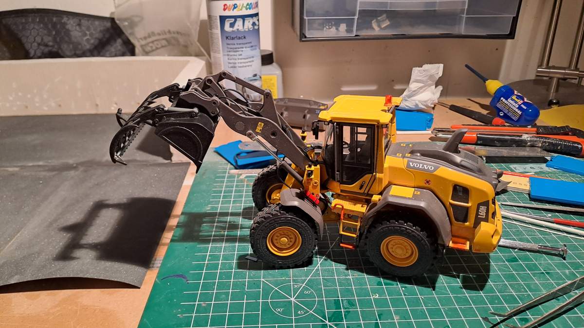 Mein Volvo Radlader brauchte eine neue Schaufel für den geplanten Kompostplatz. Fündig wurde ich beim Kramer Telelader von UH. Für die Volvo Aufnahme musste ich eine neue Aufnahme an der Schaufel bauen. Anschließend wurde die Schaufel lackiert. Hydraulikschläuche und -leitungen kommen noch.