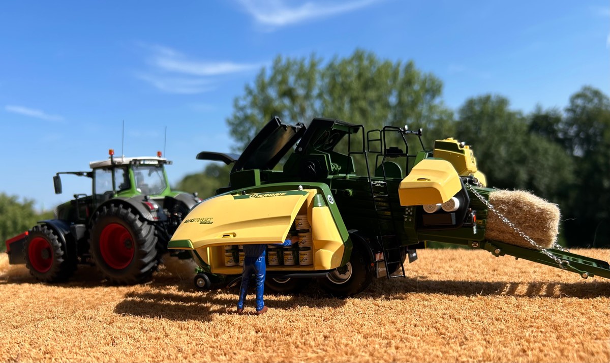 Es handelt sich um unsere erste Presse aus dem Hause Krone, derzeit sind wir sehr zufrieden, wir mussten erstmal die Presse vom Staub befreien und Garn nachlegen weil der Tag noch lang wird.