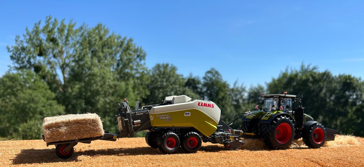 Die Presse hat ein 120x 90 Ballenmaß und die Ballen sind in der Länge variabel einstellbar. Unsere Claas Quadrant 3400 hat das selbe Ballenmaß.