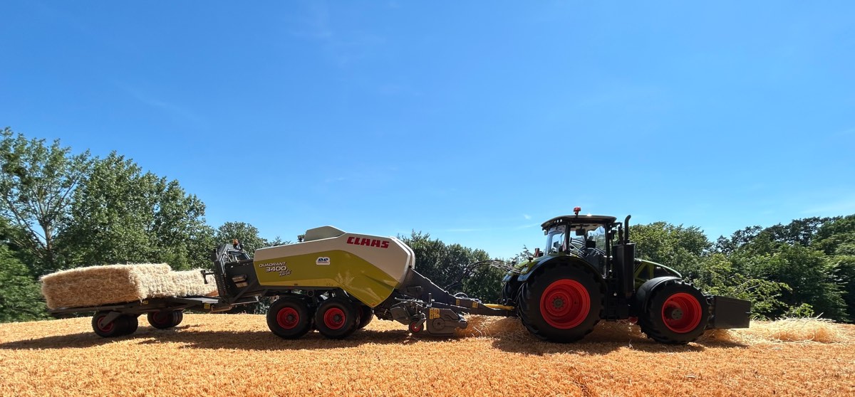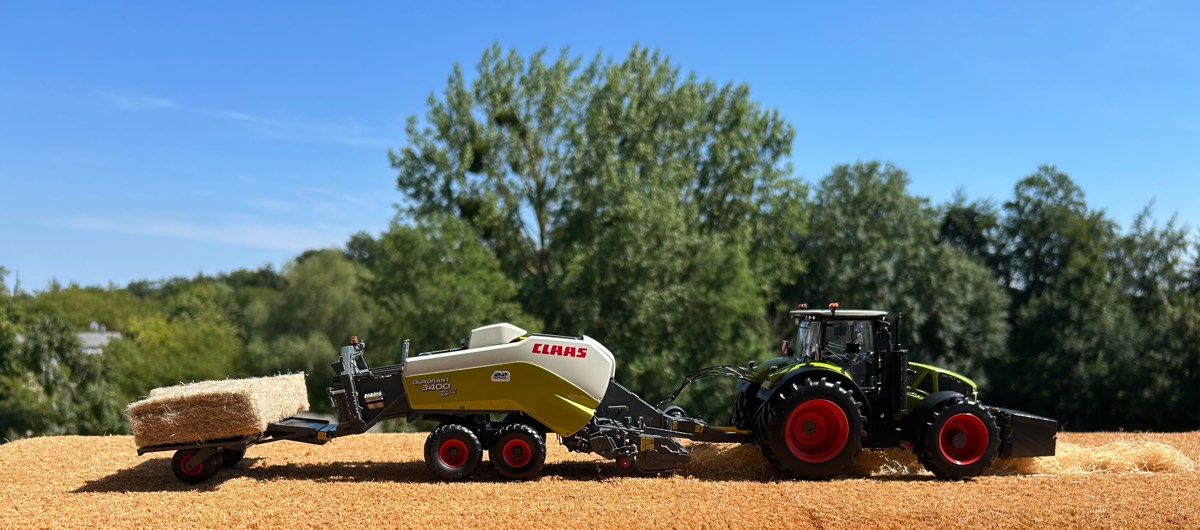 Die Presse hat ein 120x 90 Ballenmaß und die Ballen sind in der Länge variabel einstellbar. Unsere Claas Quadrant 3400 hat das selbe Ballenmaß.