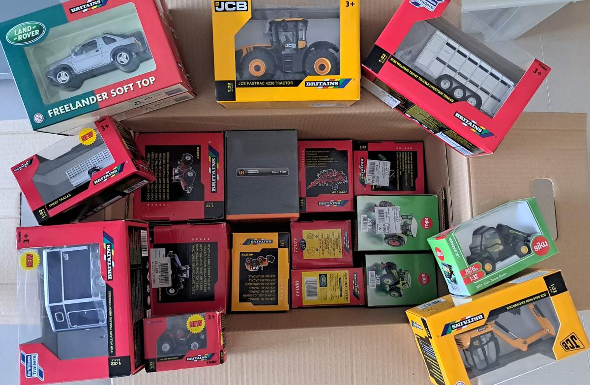 Biete überwiegend Britains und Siku, vieles OVP, einige Ersatzteile, Einiges gebraucht/bespielt, auch Bastlerware