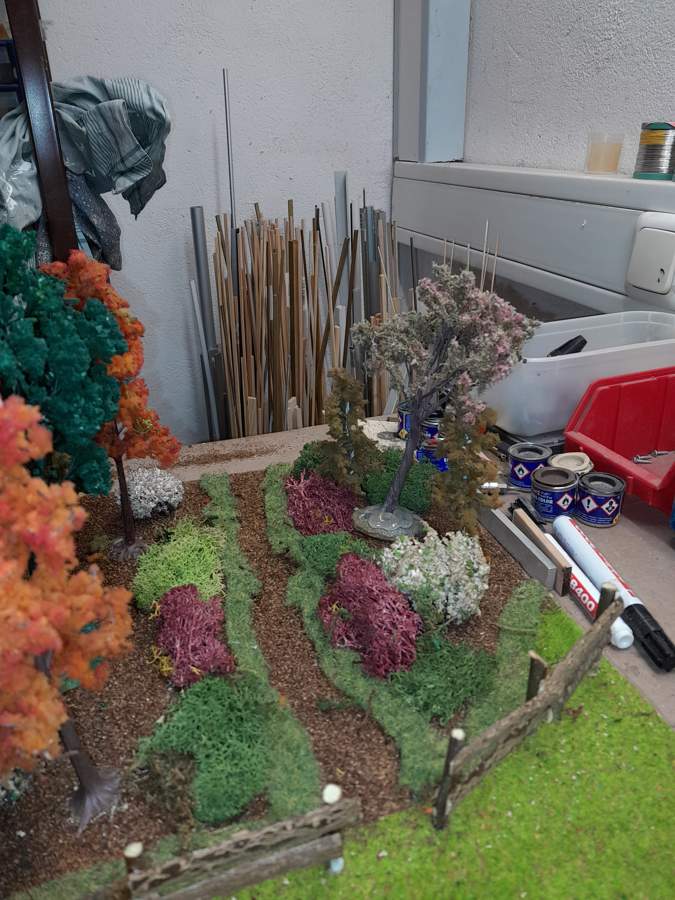 Die Wege sind aus richtiger pulvertrockener Erde die ich mit Pattex zuerst geklebt habe und nach dem Abtrocknen mit Haarspray