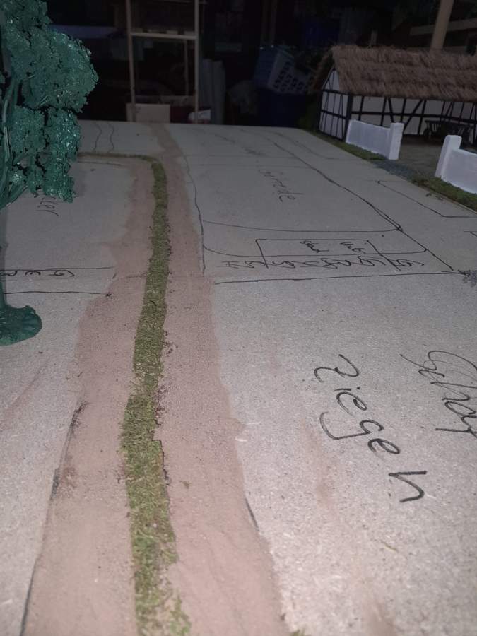 Die Wege sind aus richtiger pulvertrockener Erde die ich mit Pattex zuerst geklebt habe und nach dem Abtrocknen mit Haarspray