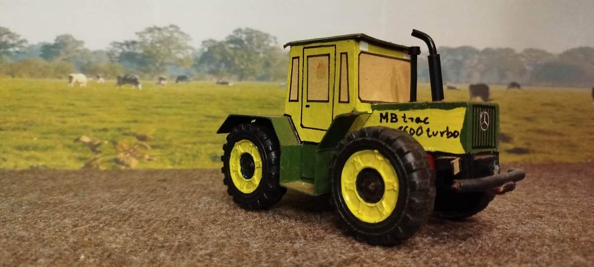 Dann noch einen MB Trac 1600 Turbo, das Fahrgestell war diesmal von einem NoName Plastik Unimog, der Aufbau wiederum aus Pappe 😎.