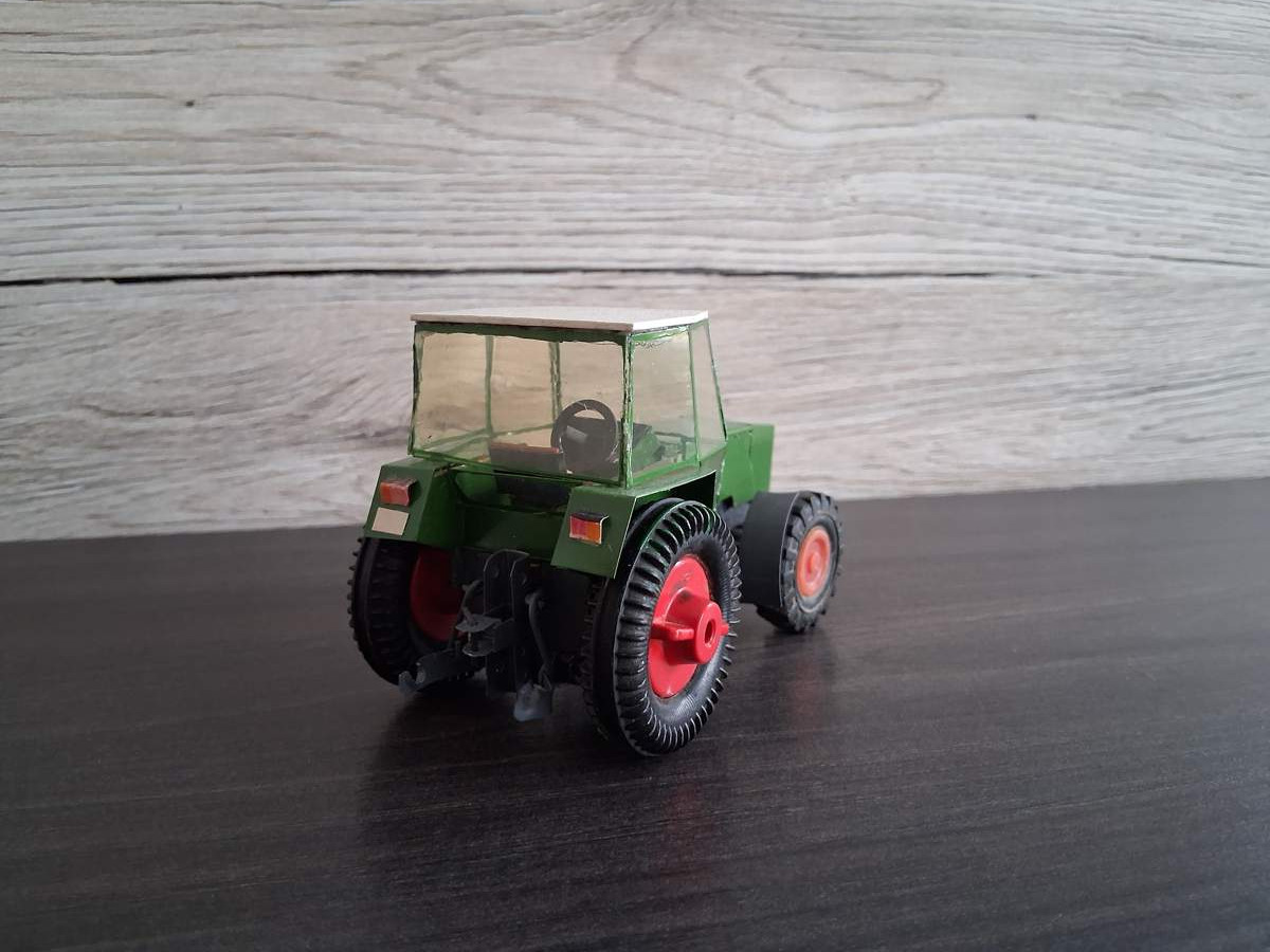 Einmal der Fendt Farmer , Fahrgestell war von einem NoName Plastik Traktor, Haube und Verdeck aus Pappe, sowie einen Gewichtstück von Lego.