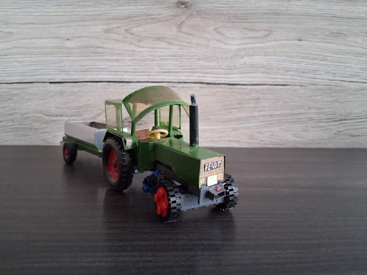 Einmal der Fendt Farmer , Fahrgestell war von einem NoName Plastik Traktor, Haube und Verdeck aus Pappe, sowie einen Gewichtstück von Lego.