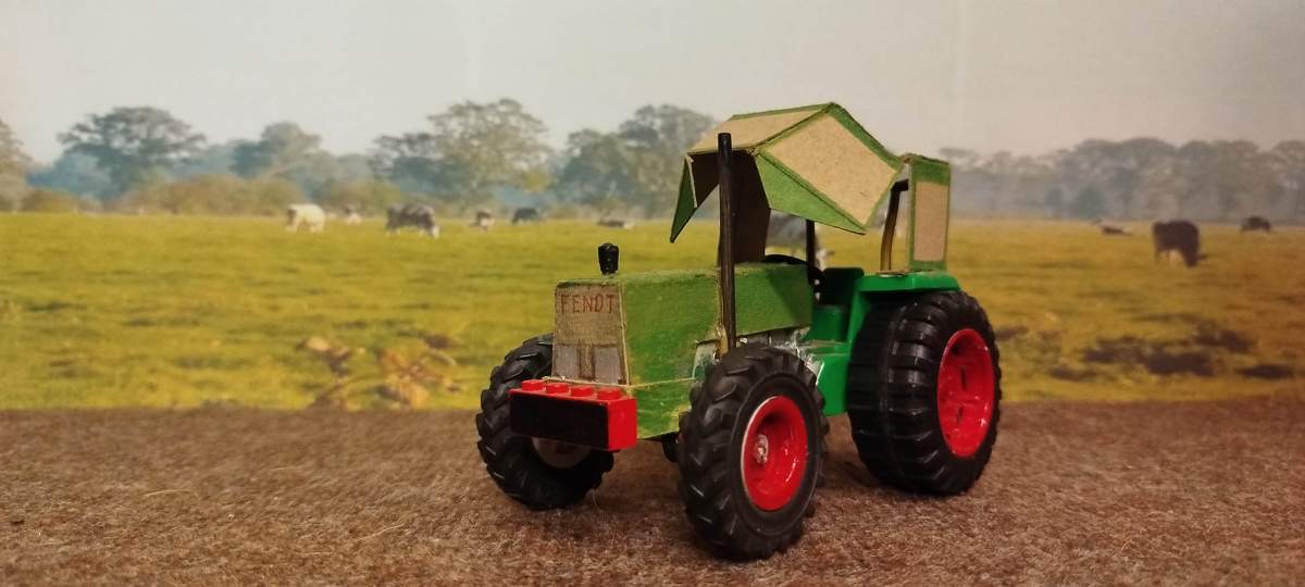Einmal der Fendt Farmer , Fahrgestell war von einem NoName Plastik Traktor, Haube und Verdeck aus Pappe, sowie einen Gewichtstück von Lego.