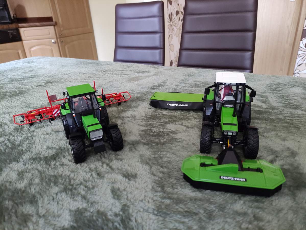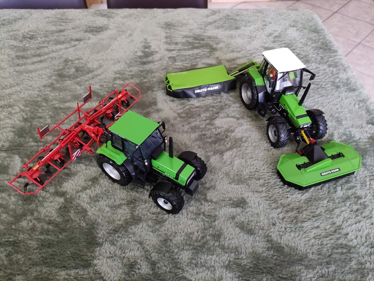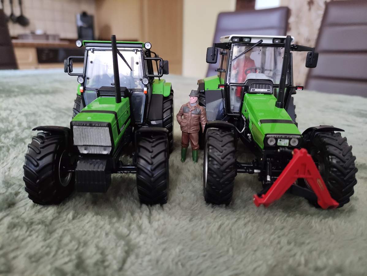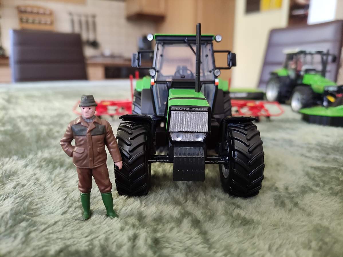 Da es ja leider keine Traktorfahrer mehr gibt, Siku schon länger nicht mehr, seit diesem Jahr auch Britains nicht mehr, bin ich auf Carrera gestoßen. Die machen auch 1:32 und haben Figuren im Sortiment. Sind eigentlich "Zuschauer" aber passen auch ziemlich gut in Trecker/Erntemaschinen rein. Am Deutz DX4 hat mir die Fronthydraulik nicht so gut gefallen, bei mir in der Gegend hatten sie früher alle nur ein Gewicht dran, deswegen habe ich mir auch eins dran gebaut. Gefällt mir so besser.