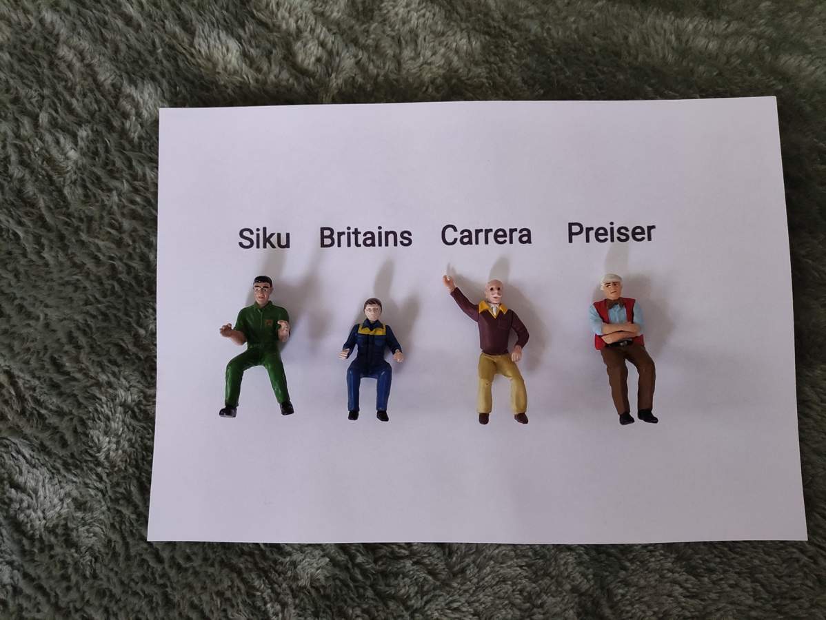 Und nun zu deinen Modellen ich finde die Carrera Figuren voll gut und wenn man sie in die Maschine setzten kann
