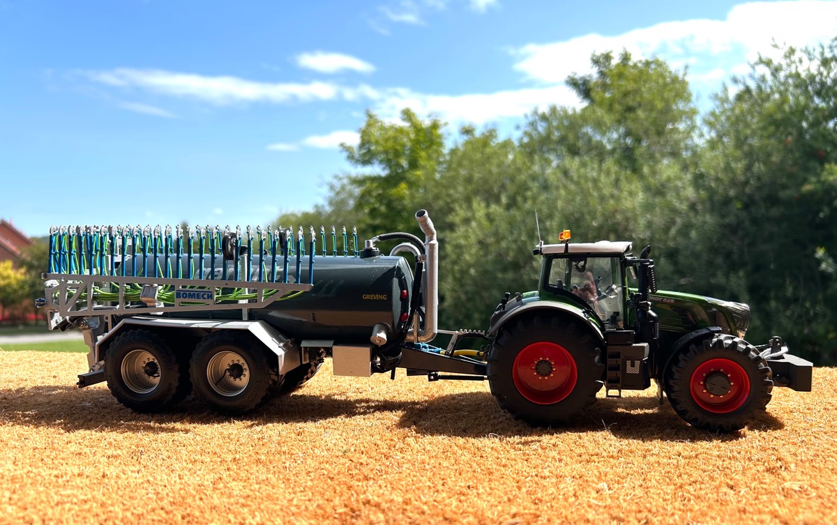 Mit seiner 900er Bereifung ist der Fendt Bodenschonend unterwegs und durch die RDA am Fass schonen wir unsere Felder.