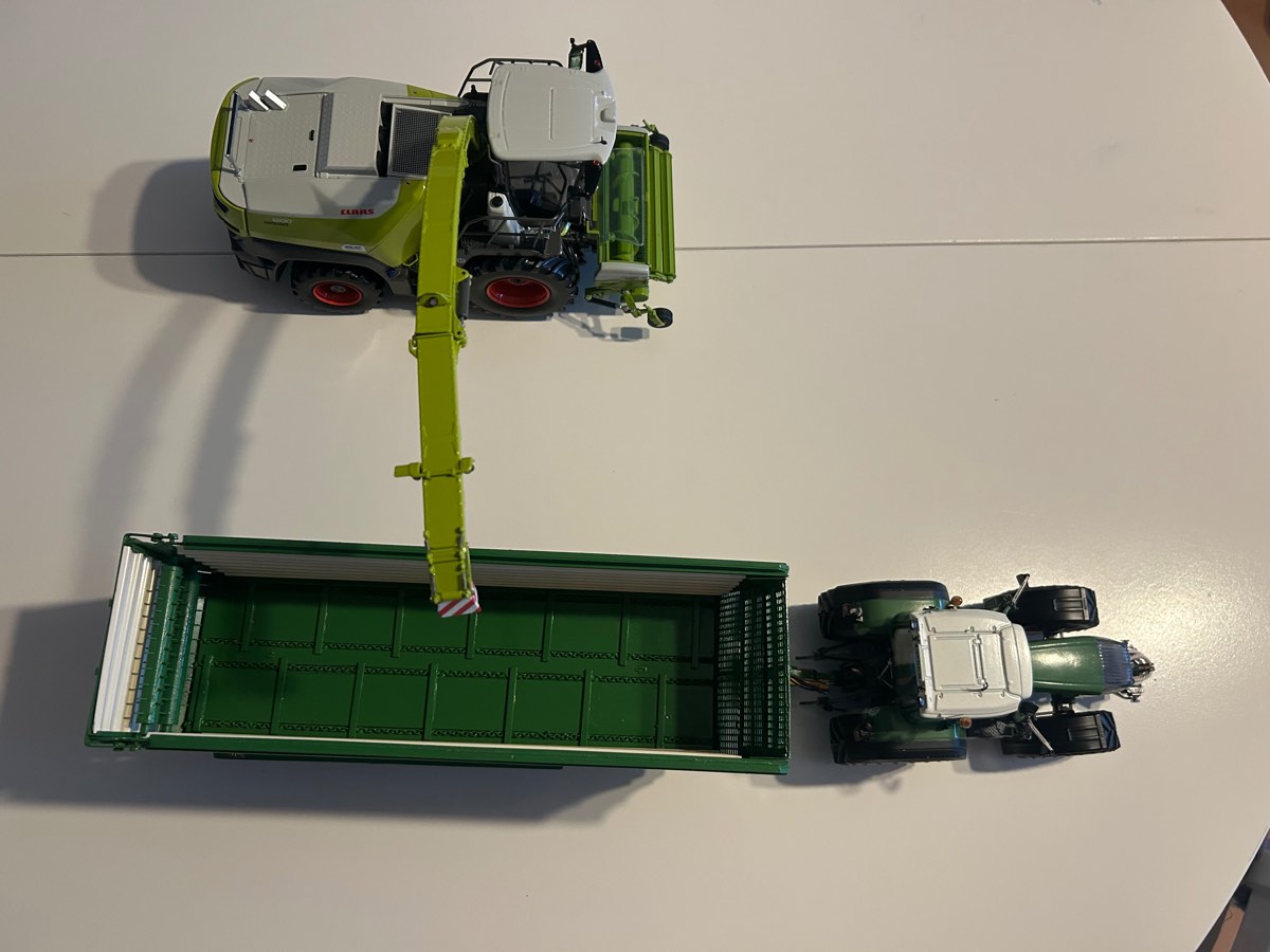 Der Abstand von Häcksler zum Transportfahrzeug ist für meinen Geschmack zu groß