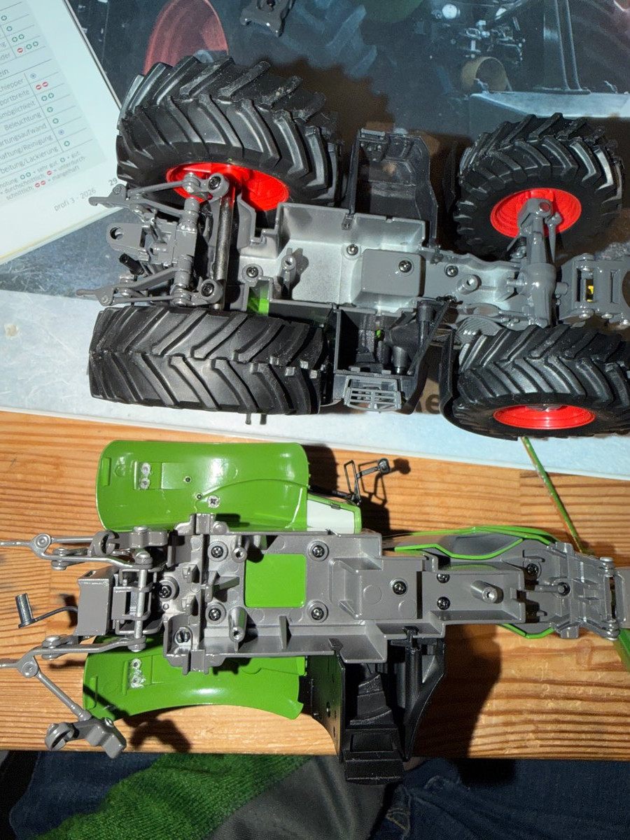 Ich hatte die Idee, dass Fendt eventuell den neuen 9er bei Wiking platziert. Die Bohrlöcher der Kabine passen aber wohl nicht 1:1 aufeinander…