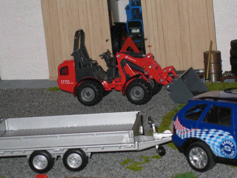 Die Balken und das restliche Kleinzeugs wird mit Hilfe des Hoftracs aufgeladen...