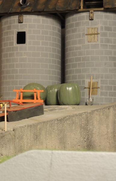 Vor den beiden Hochsilos warten ein paar Siloballen auf's Verfüttern...