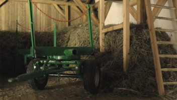Nach dem Abladen rangierten wir den Anhänger in die Tenne.