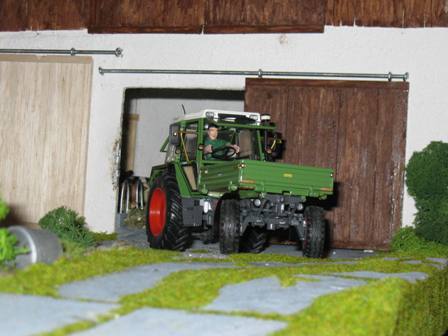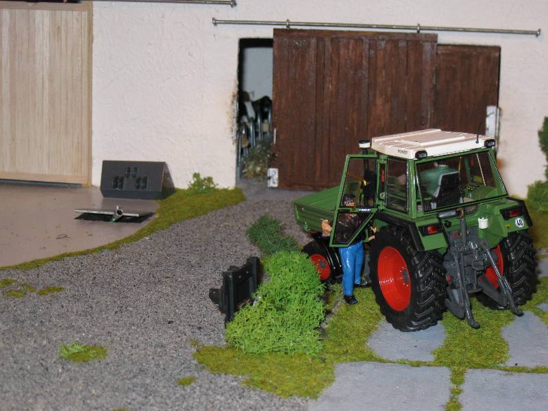 Der Blick von der Tenne der alten Scheune hinüber zum Laufstall. Rechts das Fella Mähwerk :arrow:Weihnachtsgeschenk von meiner Schwester.;)