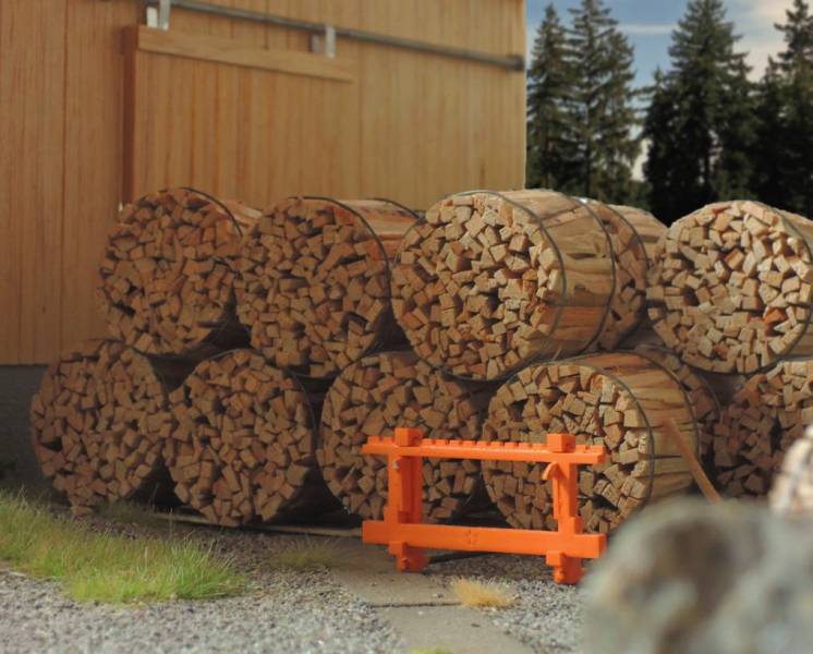 "Schaun's her, Herr Nachbar! Wir ham da einen ca. vier Meter hohen Holzstoß mit zwölf Buchenbündl - was glaubst'n du, wenn sich der selbstständig macht!?! Da san gleich wieder a paar hundert Mark...ähh...Euro beim Teufl!.......Deswegen muss man die Dinger sauber absichern, damit sich der Kunde, also auch du, über bestes Qualitätsbrennholz vom Schneider-Hof freuen kann. Aber klar, richtiges Qualitätsholz mit hoher Brennqualität hat seinen Preis - des verstehst doch?!? Du brauchst wieder 10 Ster Brennholz von uns, oder?"