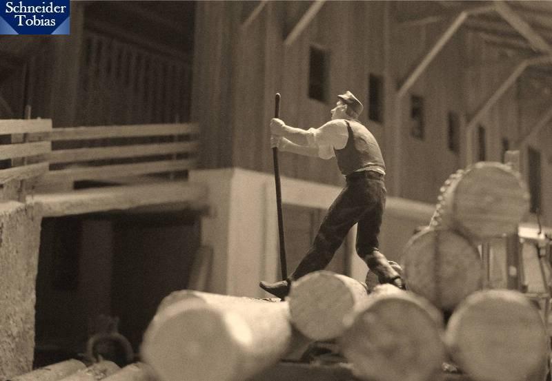 Opa räumte die Balken beiseite, während der Stamm noch platziert wurde.