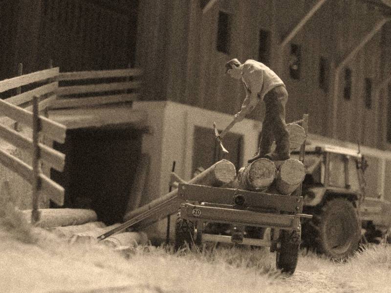Ich aber hätte Angst, so wie dein Bauer auf den Stämmen zu stehen. Wenn die ins Rollen kommen!.... Da sind die UVV sträflich vernachlässigt, oder?;)