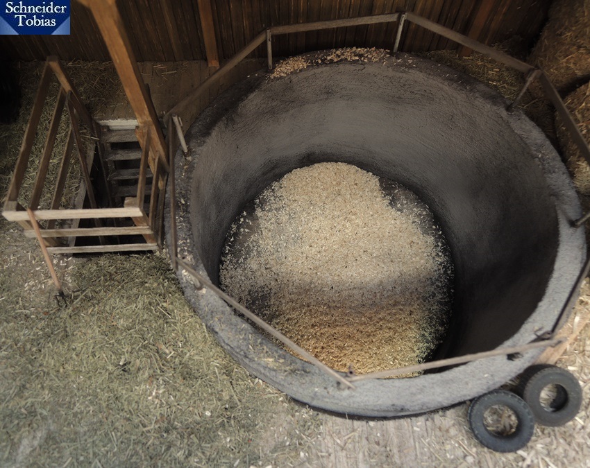 Nachdem der Bunker fast geleert war, musste Sepp in das ehemalige Futtersilo krabbeln, um die Reste Richtung Ausgang zu befördern.