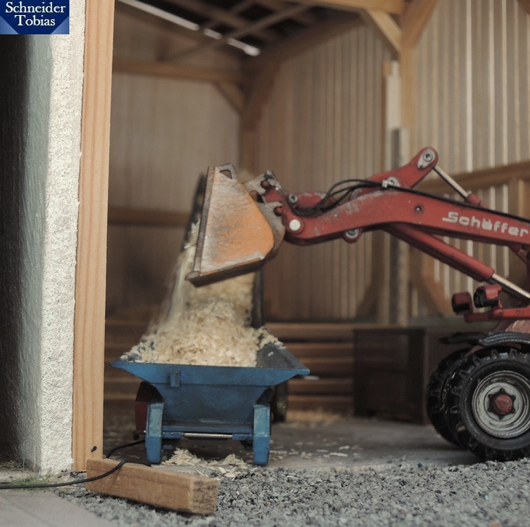 Schnell brachte Opa die ersten Fuhren Hackschnitzel zum neuen Lagerort.