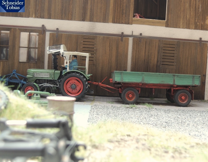 Der Anhänder ist auch schön gemacht ! Hast Du den selbst gebaut ?Beide Anhänger (Mengele und Reisch) stammen vom Jörg (Lanz 2416) und wurden von mir noch mit weiteren Details versehen (z.B.: Radnaben, Bordwandhalterungen, neue Bereifung, ...)