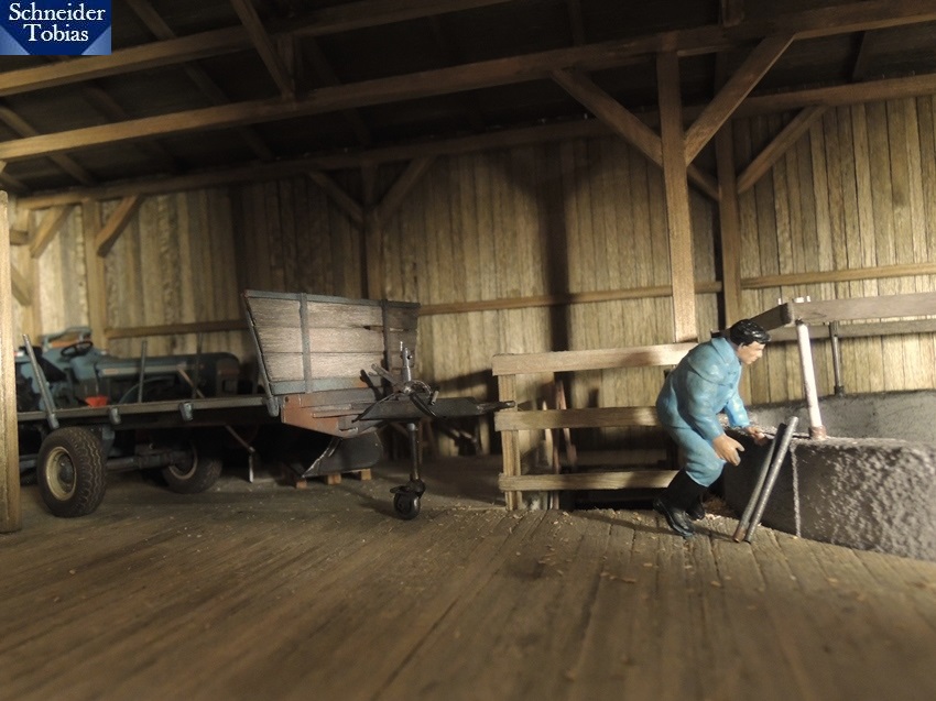 Am nächsten Tag ging Opa nach der Stallarbeit sofort hoch in die Tenne, um den Einachser für den Bauholztransport vorzubereiten.