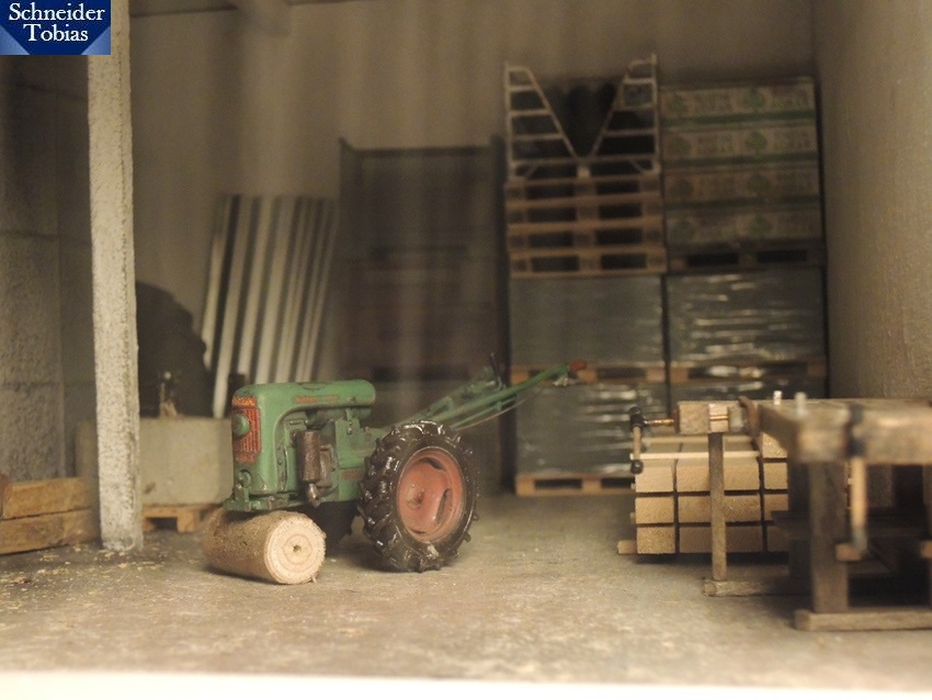 "Ach was, des passt dann schon so. Heb' du die beiden schon bezahlten Balken mit'm Sepp auf'n Anhänger.", antwortete Alfons, um potenzieller Kraftanstrengung auf jeden Fall aus dem Weg zu gehen. Opa und Sepp beluden also und Alfons rangierte den GT anschließend zur Deichsel des Anhängers. Sepp begann bereits mit den Aufräumarbeiten, während Opa zu Alfons trabte, der etwas unbeholfen am Stützrad herumdrehte.