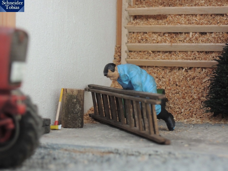 "Ja Sakrament, is' des Ding schwer! Des taugt meinem Kreuz gar ned.", ächzte Opa, als er die Leiter anheben wollte. "Na, die muss der Sepp zum Baum tragen.", gestand sich Opa ein und zitierte Sepp zur Halle.
