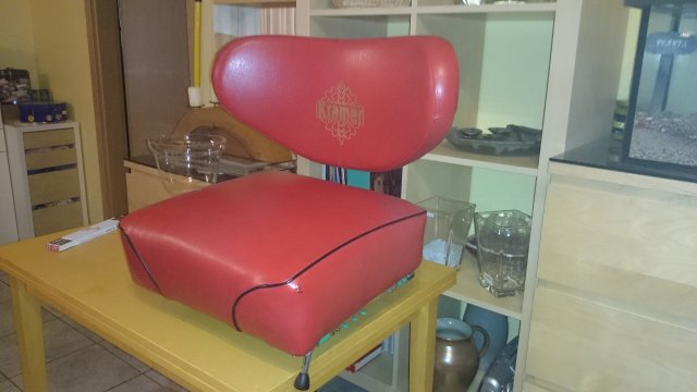 Leider war der originale Sitz des Schleppers so verbastelt, dass ich mich dazu entschieden habe, einen anderen aber trotzdem original aufarbeiten zu lassen. Nur das einprägte Kramer Logo gab es 1964 so nicht, sonst kommt der Sitz aber beinahe an das Orignial ran.