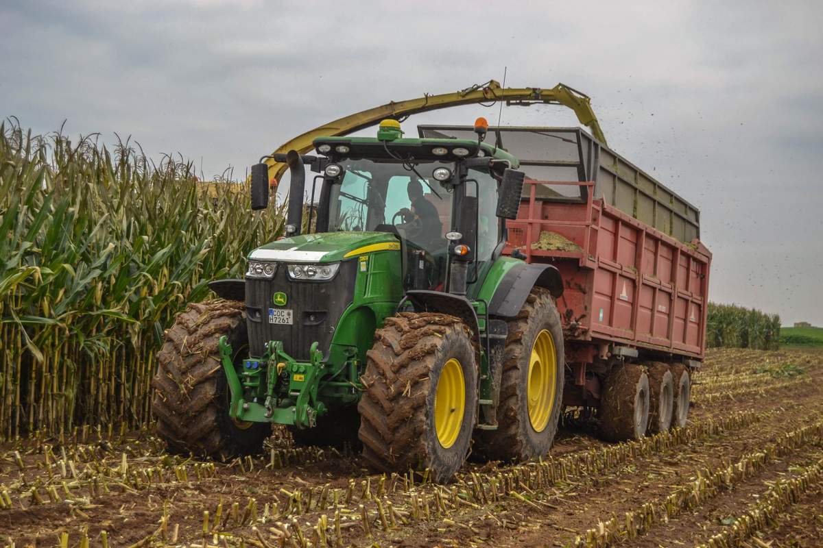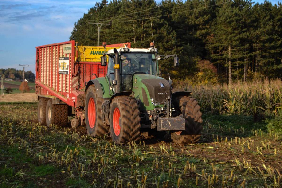 Und dann ging es rund, extra für die Bilder mit 2 Ladewägen auf einem Stück unterwegs.