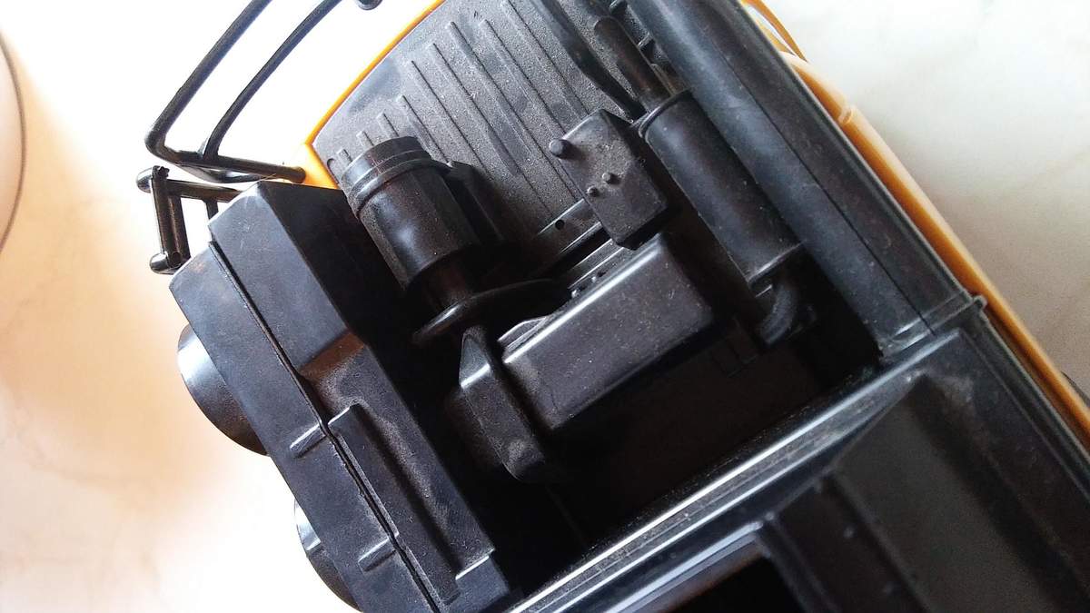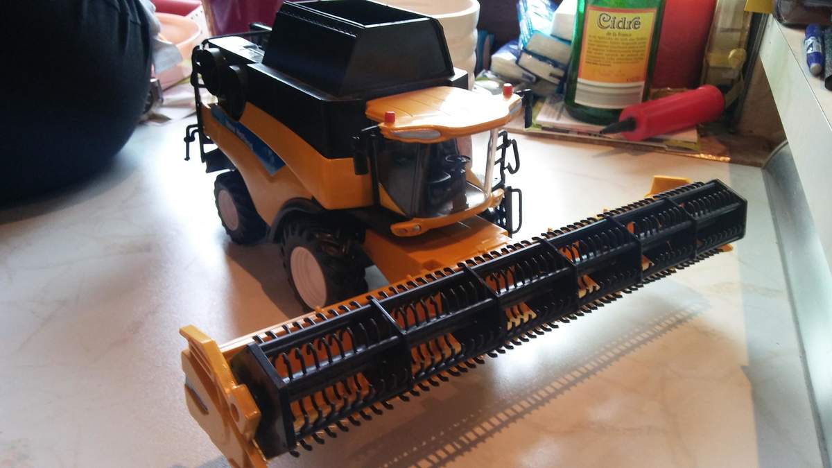 Rein Kunststoff, Kinderspielzeug, Haspel, abnehmbares Schneidwerk, Aufstiegsleiter und Abtankrohr beweglich, ansonsten leider keine Funktionen. Das Label ist aufgeklebt, nicht aufgedruckt. Wurde damals mit einem recht ansehnlichen Iveco Stralis mit Tieflader ausgeliefert, sonst hätte ich ihn stehen lassen.