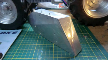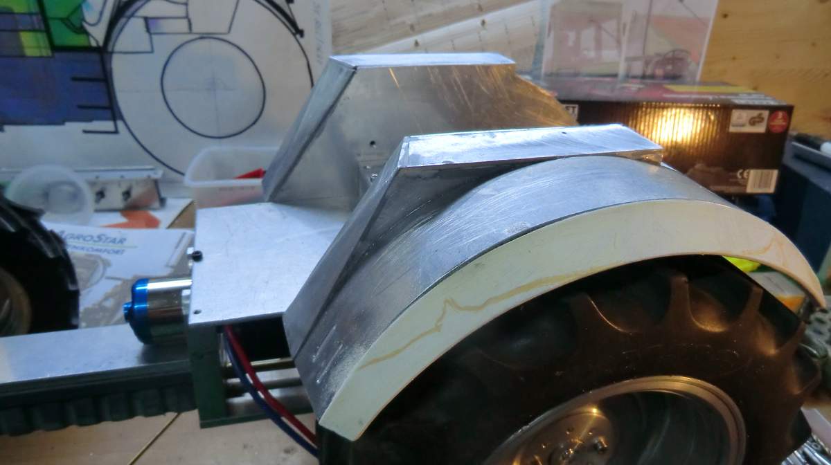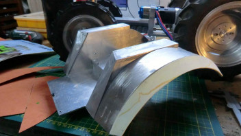 Einige Fotos der Herstellung der hinteren Kotflügel. Alu kam für die Kotflügel zum Einsatz und Plystorol für die Gummilippen.Alles wurde mit Industriekleber zusammengefügt.