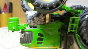 Auf der Motorhaube das John Deere Zeichen mit dem Hirsch war ganz anders als an einem "richtigen"