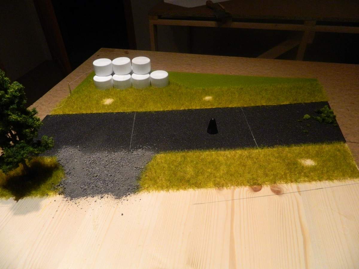 Hab nun die Teerstraße geklebt und die Bäume provisorisch aufgestellt.