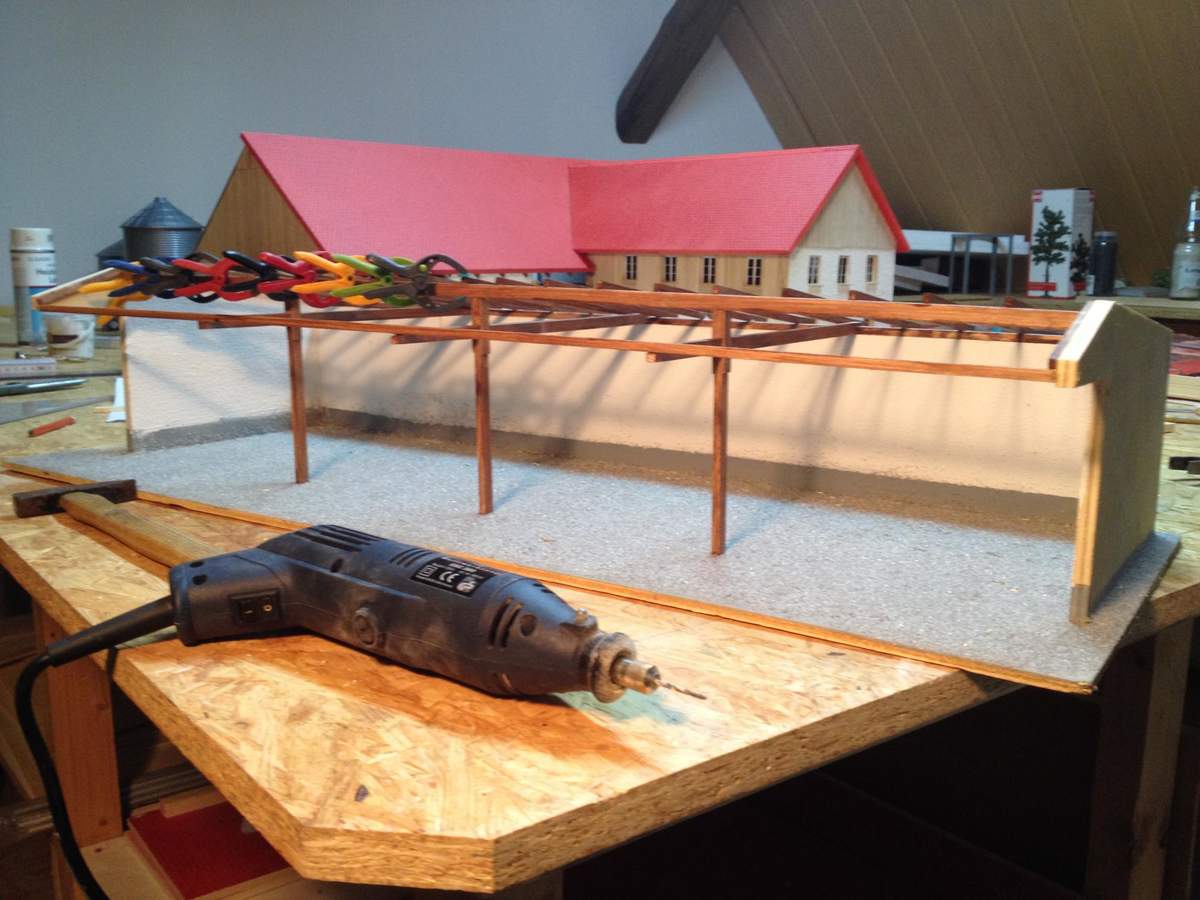 Der Schuppen wurde von innen verputzt, der Boden geschottert und das Ständerwerk erstellt.