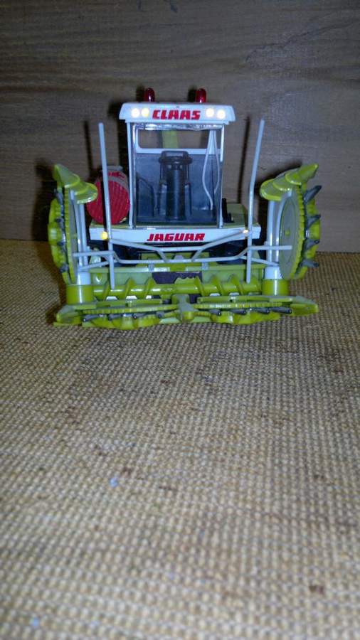 Den Häcksler habe ich (Typ eher grobmotrisch) vorne und hinten Breitreifen verpasst, eine Flüssigdüngeranlage spendiert und dann eine elektische Anlage verpasst. Per Kippschalter werden die 2 Fahrlichter, 4 Arbeitsscheinwerfer am Dach, 1 Arbeitsscheinwerfer am Auswurfrohr, die beiden Rundumleuchten und 2 Rückleuchten eingeschaltet. Gespeist werden die Lampen von einer Blockbatterie im Motorraum. Zudem habe ich das 4-reihige Maisgebiß entfernt und ein 6 Meter reihenunabhängiges Gebiß verbaut: