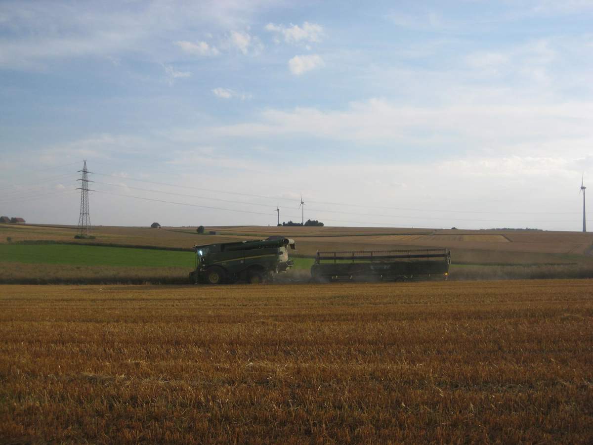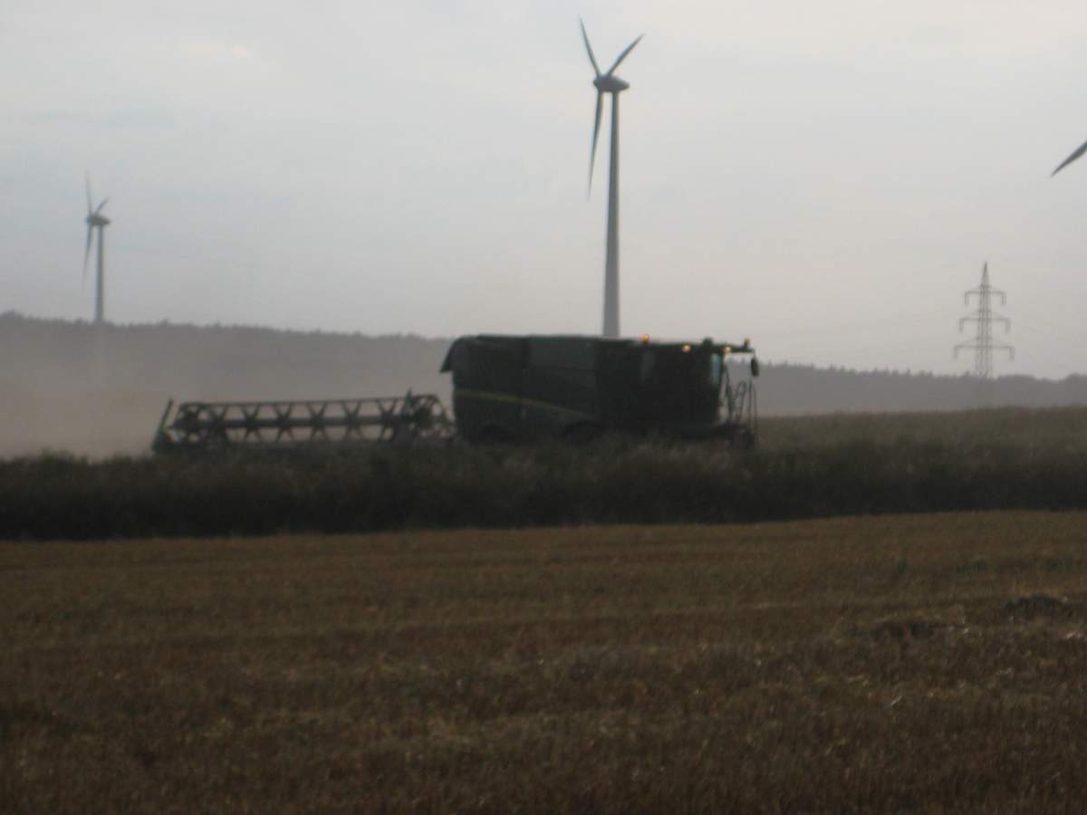 Bevor wieder Bilder kommen ein paar Infos, auf das Feld wo die dreschen ist 100 ha groß (auf dem Feld stehen 11 Windräder drauf) und das größte von den Gutshof.