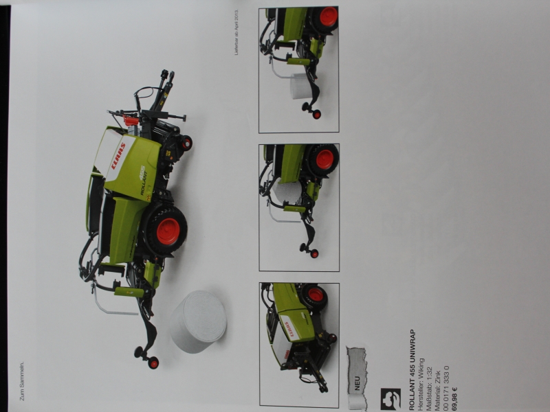 Im April 2013 wird eine Claas Rollant 455 Uniwrap von Wiking erscheinen
