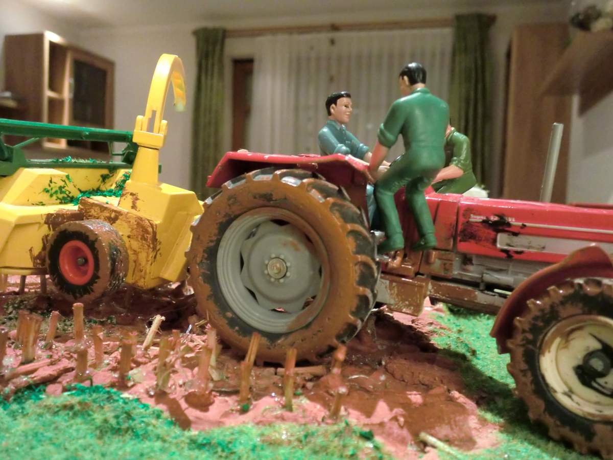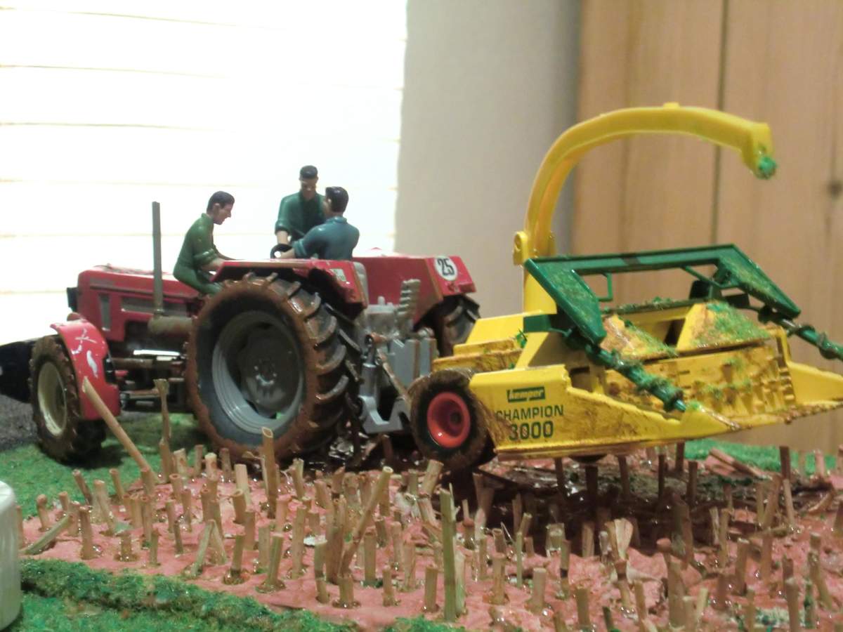 Als wir bei uns Zuhause vorbeifuhren wurde schon wieder am Nachbarsfeld Gehäckselt, da Die Kolonne am vorigen Tag wegen zu schlechtem Wetter und ziehmlich viel Schlamm in die Knie ging. Dementsprechend nass war es trotzdem noch