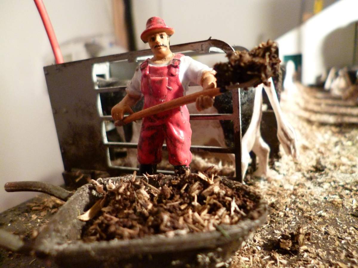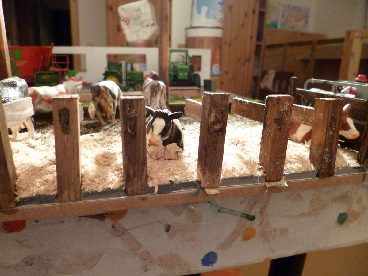 Der Jungviehstall, den ihr auf den Bildern seht, ist mein neuestes Projekt. Da mir bei dem Anbindestall den ich gebaut habe letztendlich nur die Bodenplatte gefiel (wollte auch mal das Material ausprobieren (Schaumstoff mit einer Papierschicht)) und mir die Hofstruktur auch nicht so gefiel