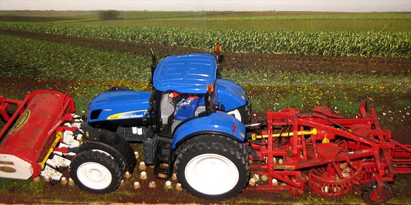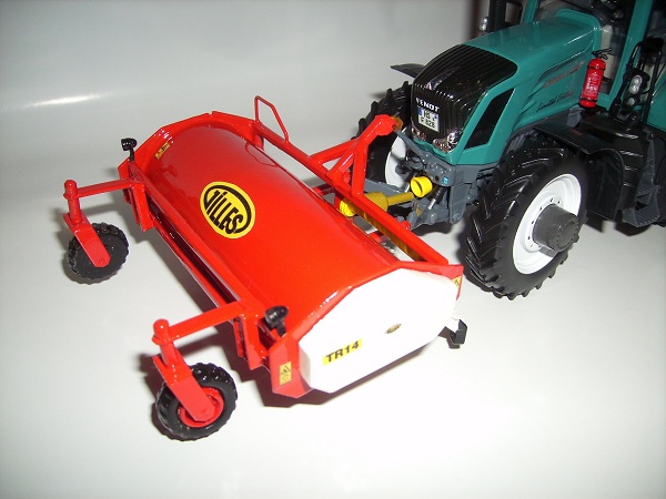 Ich habe den Blattschlegler und Roder jeweils neu lackiert und mit neuen Aufklebern versehen. Den Nachköpfer und die Schutzkästen am Schlegler habe ich mit weisser Farbe und einem Pinsel überarbeitet. Beide Geräte haben zusätzlich noch Warnaufkleber bekommen. Der Schlegler bekam vorne noch 2 Arbeitsscheinwerfer und neue Unter- u. Oberlenkerbolzen.