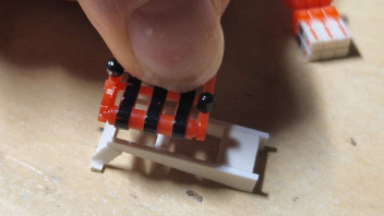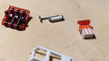 Hydraulikdosen in Front und Heck oder auch die orangenen Reflektoren deute ich mit dem Zahnstocher an, in dem ich wenig Farbe aufrufe.