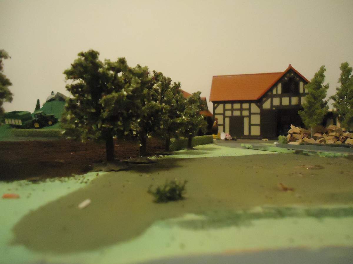 Ich möchte euch heute meinen kleinen Hof Vorstellen.Es ist mein erstes Dio.Ich habe es auf einer Spannplatte(1m²) gebaut und wird noch vergrößert. 1:32;)
